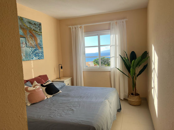 This spacious and bright 96 m² apartment is located in the popular residential complex Balcón del Atlántico in the quiet area of Torviscas Alto. With its east-southwest orientation, it offers magnificent views of the ocean and the island of La Gomera from all rooms. Great location just minutes from the X-Sur shopping center, the TF-1 highway and the main tourist attractions.